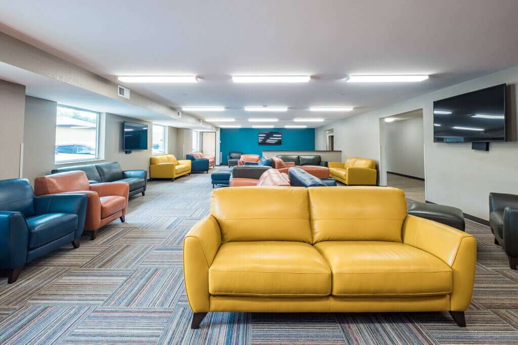 Each floor in our halls has a gathering space for residents to hang out and watch TV.